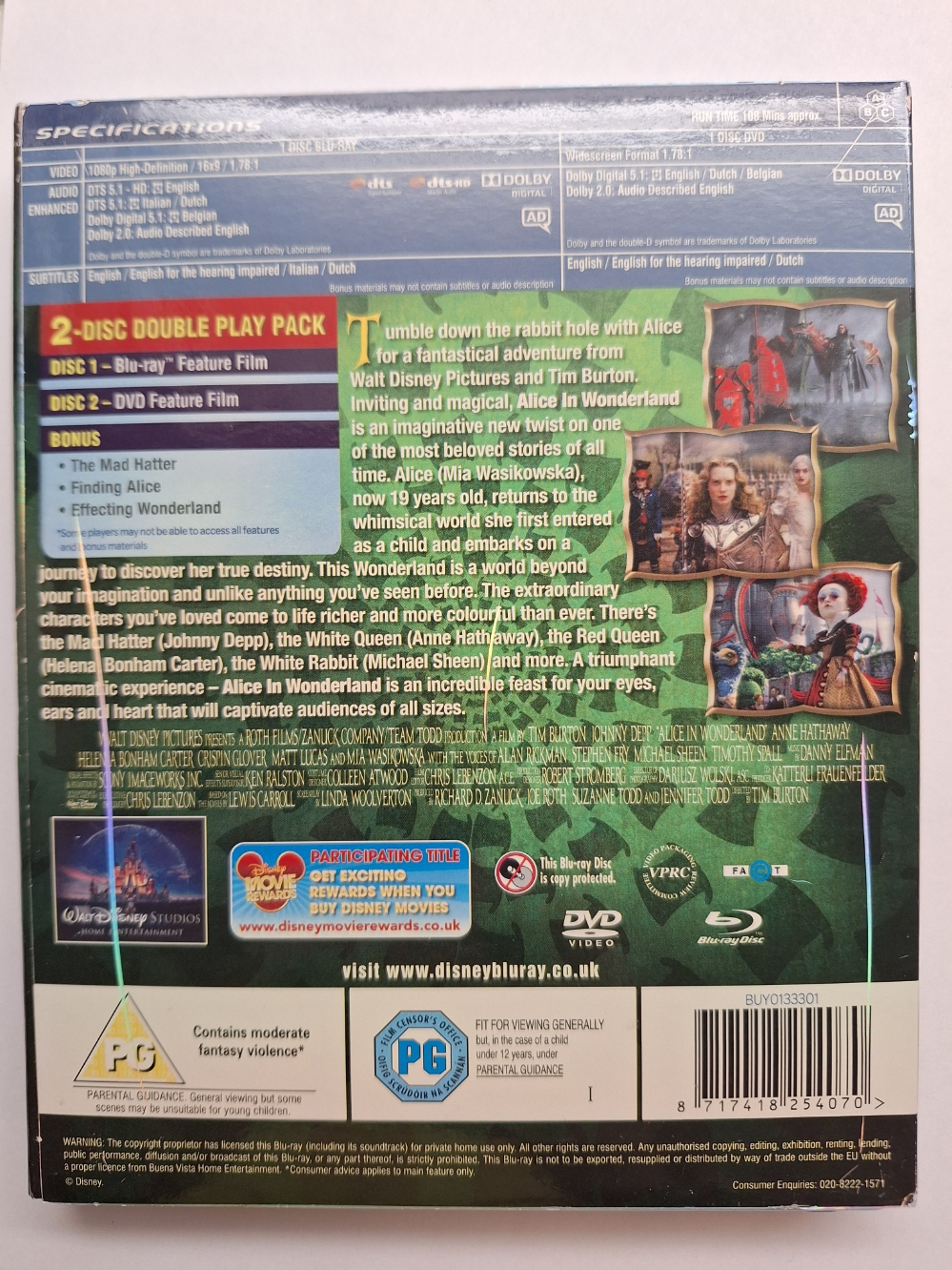 Alice in Wonderland Blu ray (slipcover)