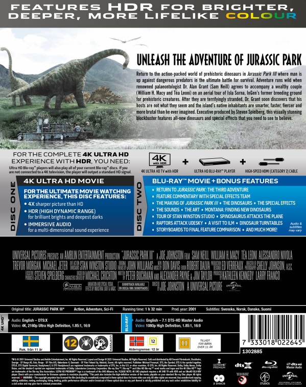 Jurassic Park 3 Steelbook 4K UHD + Blu Ray