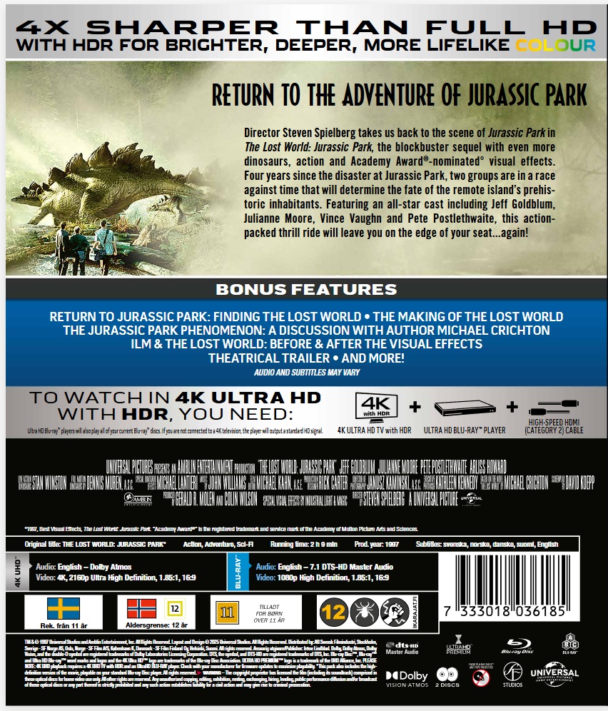 The Lost World Jurassic Park 4K + Blu ray (remastered dolby vision)