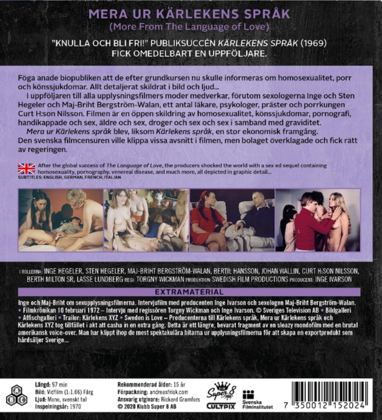 Jatko-osa klassiselle ruotsalaiselle teokselle Kärlekens språk. Käsittelee seksuaalisuutta ja yhteiskunnallisia ilmiöitä dokumentaarisesta näkökulmasta. Harvinaisempi Blu-ray-julkaisu.