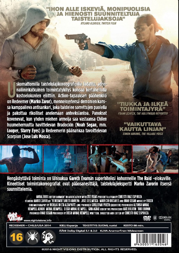 Uskomattomilla taistelulajikoreografioilla ladattu, adrenaliininkatkuinen toimintatykitys kohoaa kertaheitolla kostoelokuvien eliittiin. Action-tapauksen päähenkilö on Redeemer (Marko Zaror), menneisyytensä demonien kanssa kamppaileva antisankari, joka taistelee sorrettujen puolella ja pakottaa rikolliset anelemaan anteeksiantoa. Panokset kovenevat, kun yhden miehen armeija saa vastaansa Chilen huumeherruutta havittelevan Bradockin (Noah Segan, mm. Looper, Starry Eyes) ja Redeemerin päänahkaa tavoittelevan Scorpion (Jose Luis Mosca).