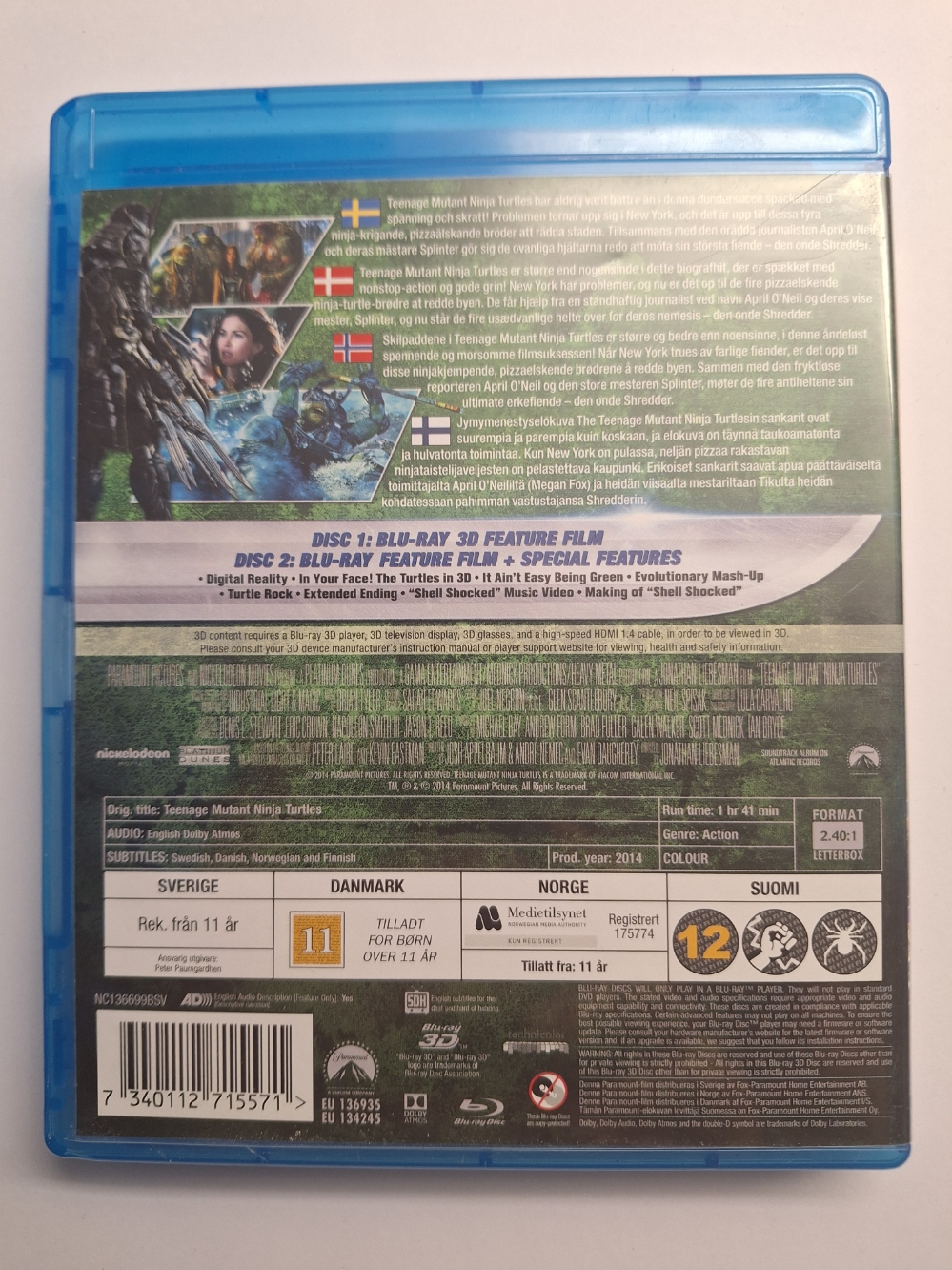 Teenage Mutant Ninja Turtles 3D + 2D Blu ray