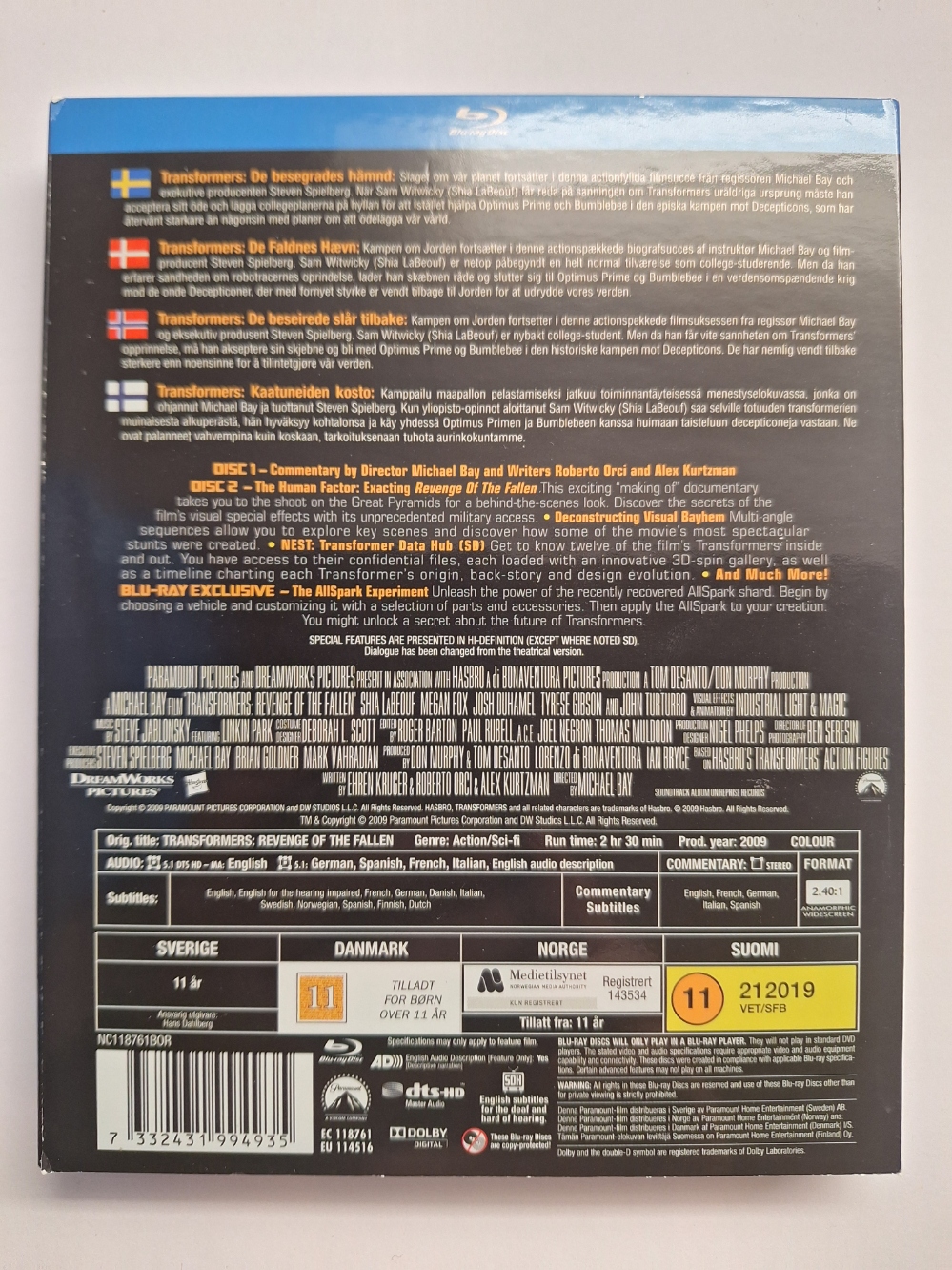 Transformers Revenge of the Fallen Blu ray (slipcover)