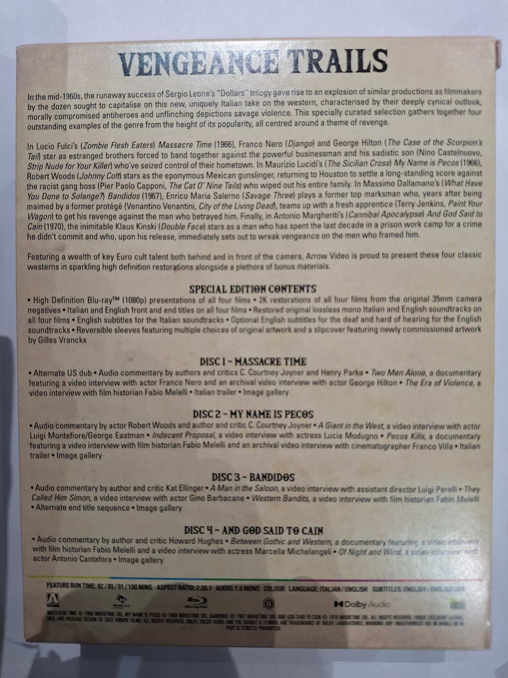 Vengeance Trails Massacre Time / My Name is Pecos / Bandidos / And God Said to Cain | Limited Edition Blu ray