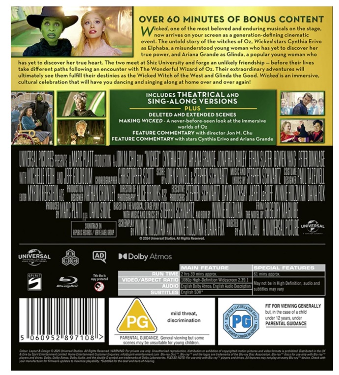 Wicked Blu ray (slipcover)
